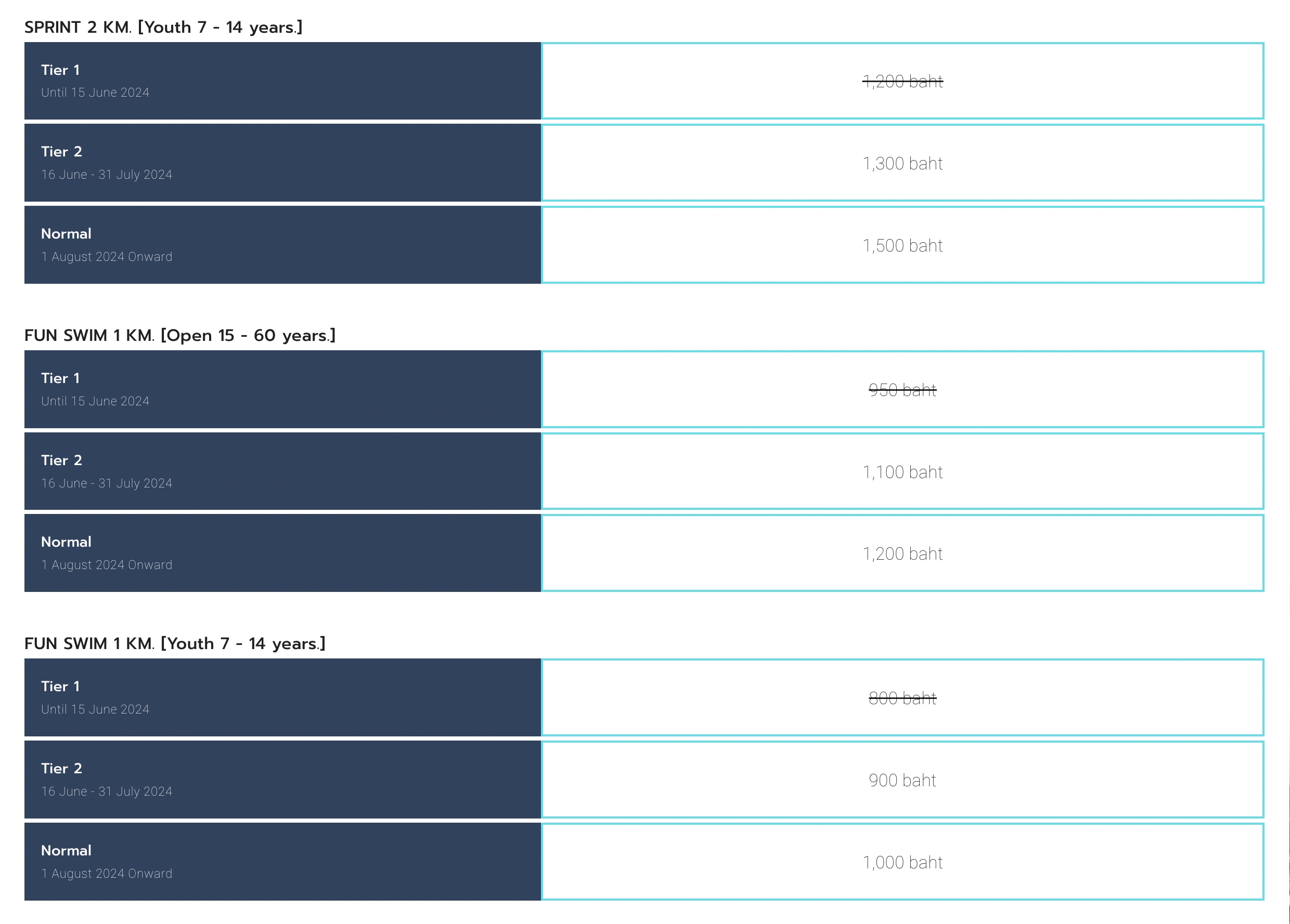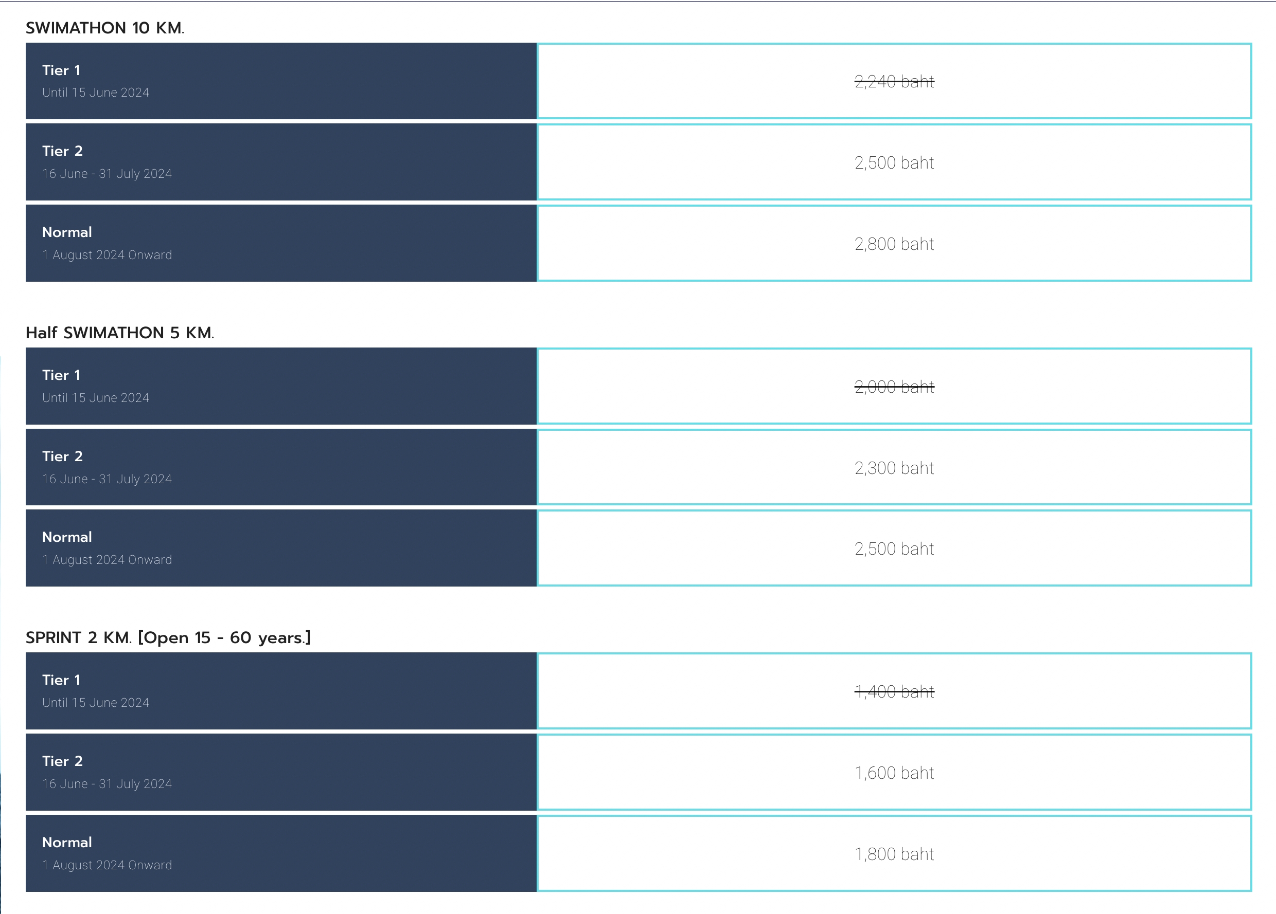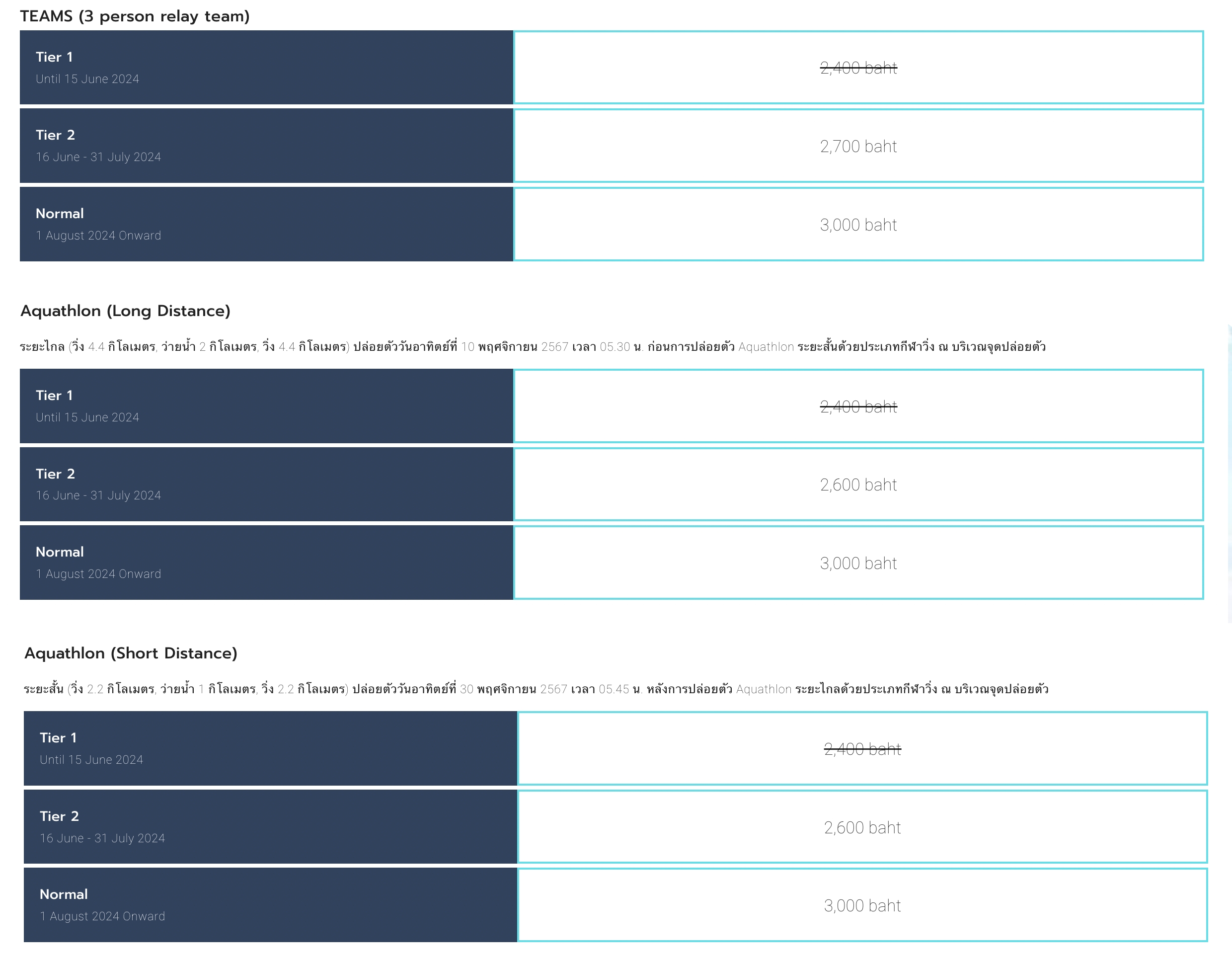 Notification of change of information specified above Changes can be made 15 days prior to the race only. In case of changing the name and distance on the race day, a fee of 1,000 baht will be charged per 1 change.
